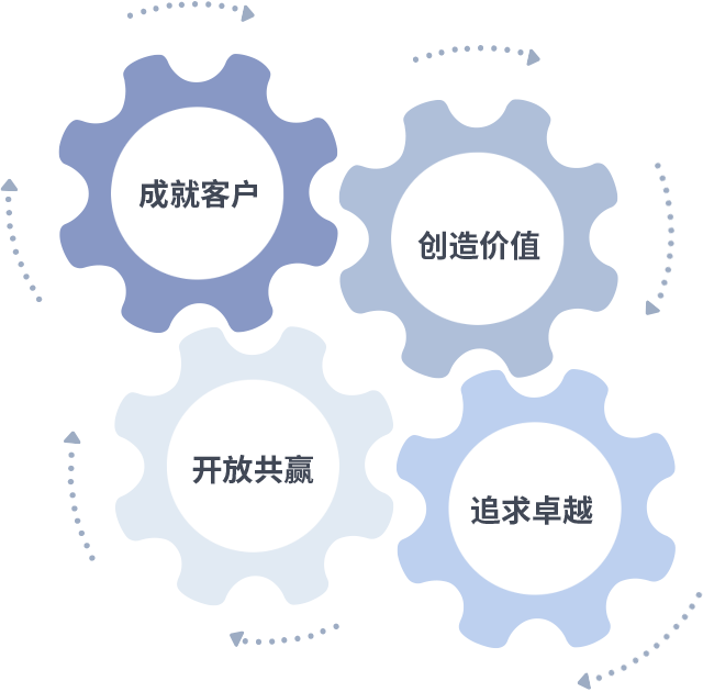 成就客户是一切决策的出发点,创造价值是衡量所有工作的标准,追求卓越是Z6集团做事做人的态度,开放共赢是Z6集团的格局也是最终的结果。价值观的齿轮环环相扣,推动着组织里的每个人不断向前。